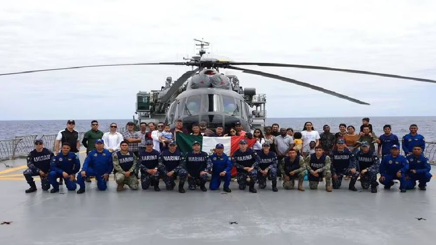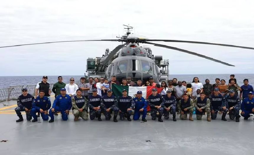 La Embajada de México en Haití ha compartido una fotografía en la que se ven a connacionales junto a efectivos de la Marina, sosteniendo una bandera nacional y frente a un helicóptero. Anteriormente, la Embajada había solicitado a los mexicanos en Haití que se pusieran en contacto con ellos y que evitaran moverse debido a la violencia en la región.