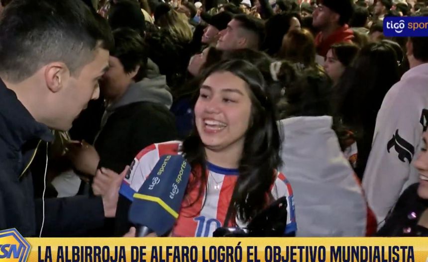 Están entrevistando gente celebrando. El periodista, sin saberlo, da justo con Mia Cabañas, la hija del gran Salvador, aquel goleador inolvidable.