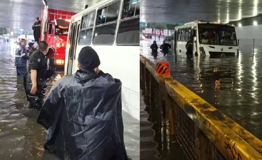 Rescatan a pasajeros atrapados en microbús tras intensas lluvias en CDMX