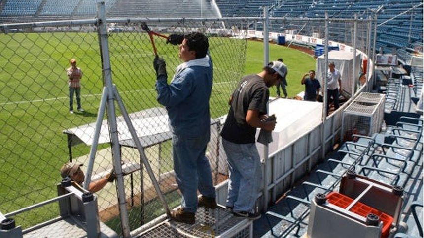 Trabajadores iniciaron el lunes el retiro de las vallas en el Estadio Azul, las cuales separan a los aficionados en las gradas de los jugadores en la cancha.