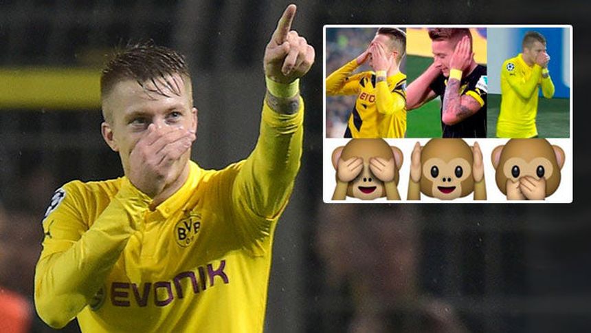 Marco Reus, delantero del Dortmund, completó en sus celebraciones las tres peculiares caras del mono de Whatsapp, todo debido a una apuesta con uno de sus amigos.