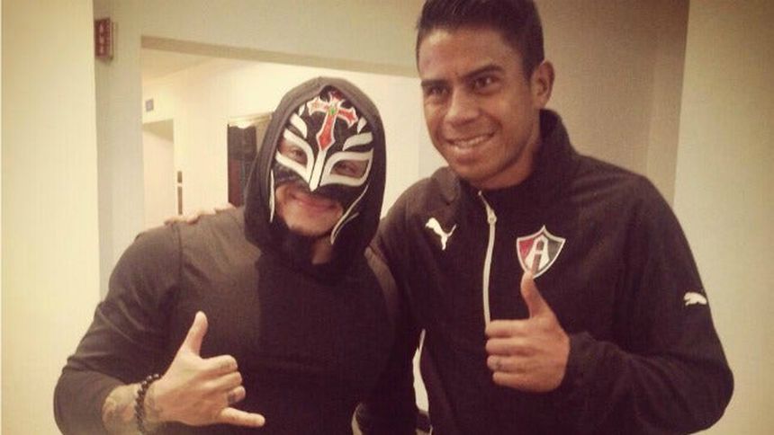 Previo al evento de la Triple A que se llevará a cabo en Guadalajara, el nuevo elemento de la Tres veces estelar', Rey Mysterio, convivió con Juan Carlos Medina, mediocampista del Atlas.