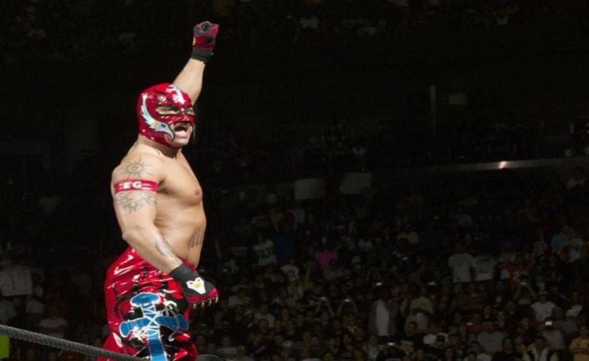 Rey Mysterio celebra durante una pelea | Twitter @reymysterio