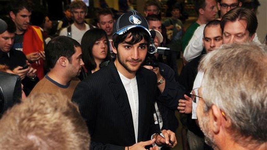 Con porristas con pompones en el aeropuerto, carteles que decían: "¡Te amamos, Ricky!" y un anuncio a toda página en el diario local, los Timberwolves de Minnesota recibieron el lunes a su nuevo astro, el base español Ricky Rubio, tras dos años de espera.