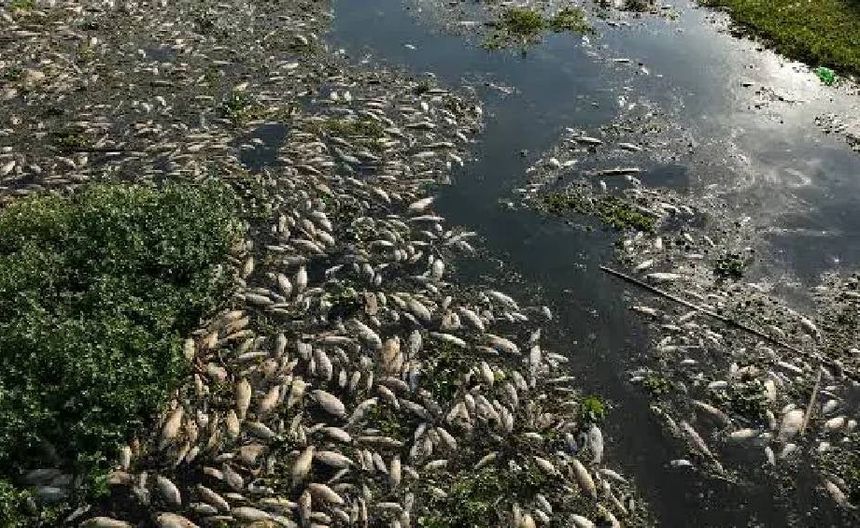 Río en Brasil se cubre con toneladas de peces muertos