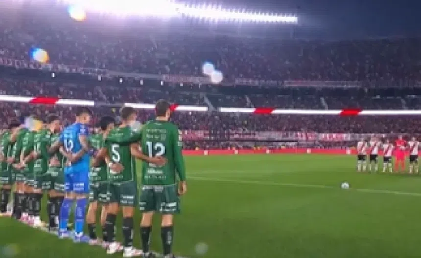 Fue antes del silbatazo inicial que ambos equipos acompañaron el momento en el círculo central mientras se anunciaba en el sonido local el minuto de silencio que se convirtió en aplausos incluso por los hinchas.