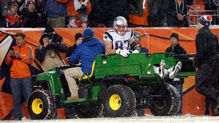 Rob Gronkowski, ala cerrada de los Patriotas de Nueva Inglaterra, sufrió una fuerte lesión en la rodilla derecha durante el duelo contra los Broncos de Denver, lo cual lo obligó a retirarse del partido mientras se jugaba el último cuarto del Sunday Night Football.