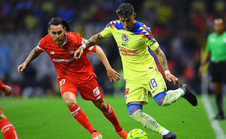 Cerca del final del medio tiempo, cuando América ya lo ganaba 3-1, los Diablos Rojos comenzaron a acechar el área de Luis Ángel Malagón, presión que resultó en un centro de Jean Meneses que pegó en la mano de Javairo Dilrosun.