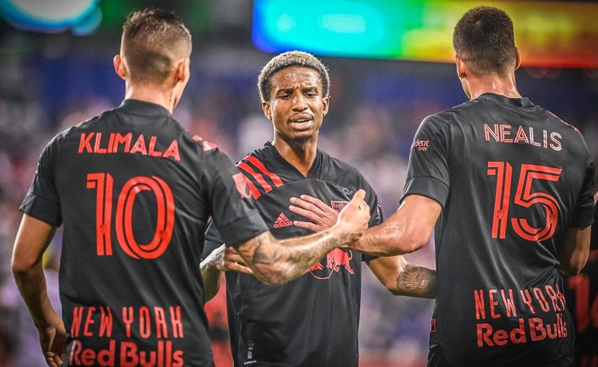 Patryk Klimala celebra gol con sus compañeros | TWITTER @NewYorkRedBulls