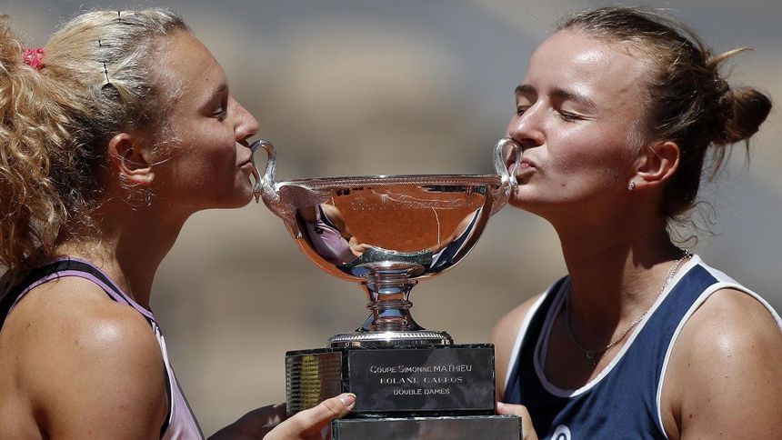 Siniakova y Krejcikova besan el trofeo de parejas en Roland Garros | EFE