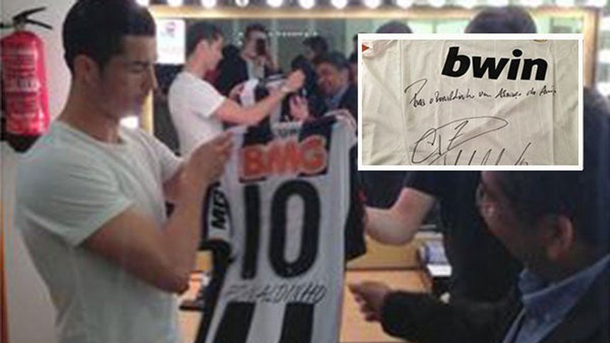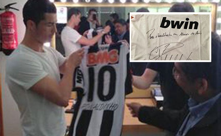 "Para Ronaldinho, un abrazo de amigo", se lee en la prenda firmada por CR7.