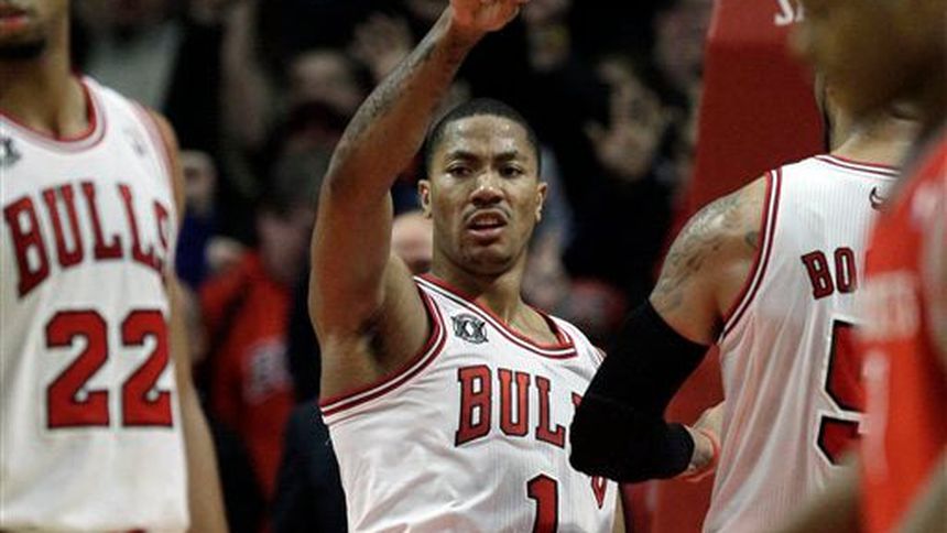 Derrick Rose encestó el sábado 30 puntos y acertó un disparo de tres unidades cuando sonaba el final del tiempo regular para forzar el tiempo extra, y los Bulls de Chicago vencieron por 119-116 a los Rockets de Houston.