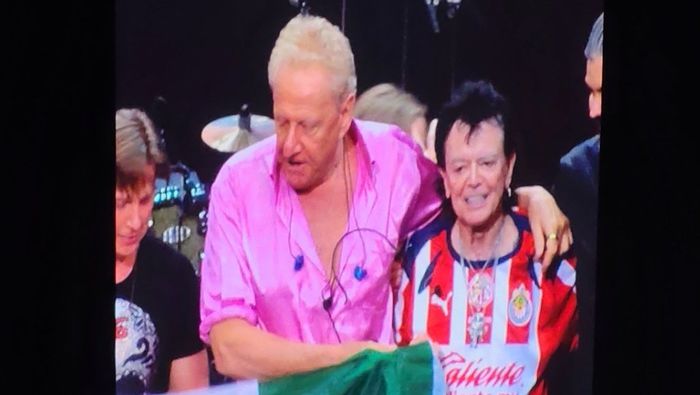 Russell Hitchcock presume la playera de Chivas en pleno concierto