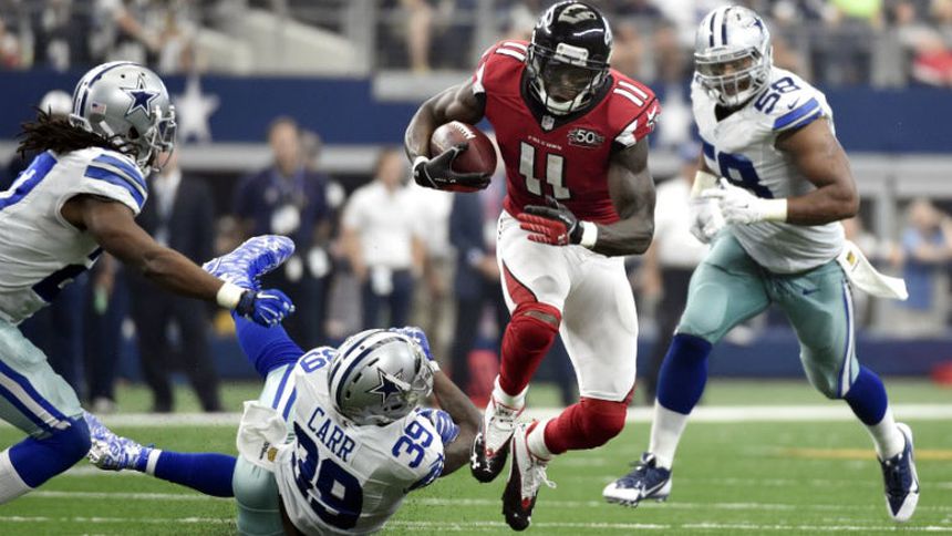 Matt Ryan conectó dos pases de anotación con Julio Jones, fórmula letal que guió a Atlanta a un triunfo al que también colaboró Devonta Freeman, quien aportó 141 yardas y tres anotaciones, para que los Halcones vincieran 39-28 a los Vaqueros de Dallas.