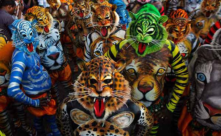 En el estado de Kerala se llevó a cabo el Baile del Tigre, o ';Pulikali';, para conmemorar el Onam, festival que coincide con la época de cosecha en India.