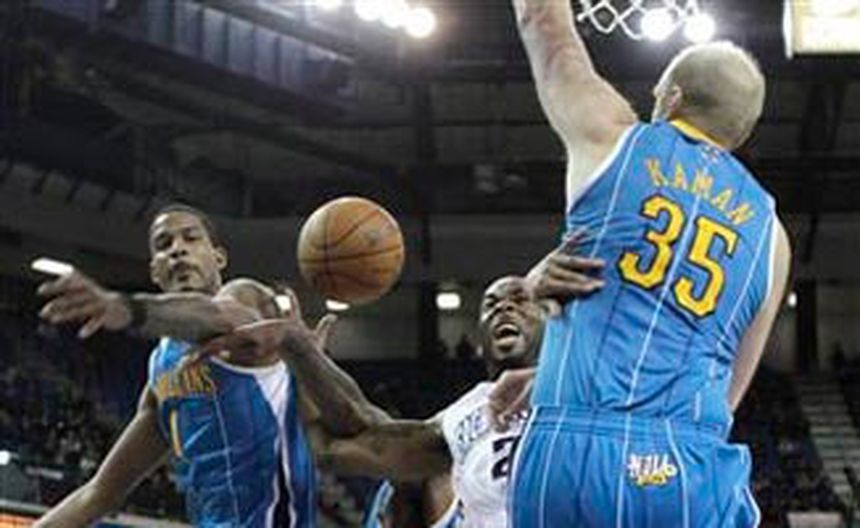 John Salmons anotó la canasta del triunfo a 6,8 segundos del final, Marcus Thornton consiguió 25 puntos y los Kings de Sacramento superaron el miércoles una racha de cuatro reveses con su victoria por 99-98 sobre los Hornets de Nueva Orleáns.