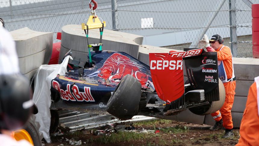 El ibérico sufrió un percance con una barrera de seguridad que destrozó parte de su monoplaza y posteriormente perdió el control, hasta etsrellarse de frente en otra de las barreras.