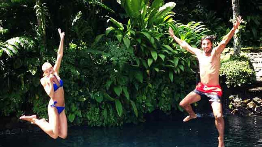 En una de estas imágenes se ve a Khedira emulando a 'Tarzán', tirándose al agua con su 'Jane', rodeados de una frondosa vegetación que, en efecto, parece pertenecer a una auténtica jungla.