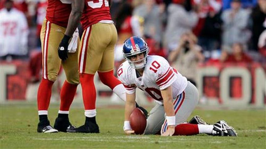 Justin Smith desvió el domingo un pase de Eli Manning en los últimos segundos del intento de remontada del quarterback de Nueva York y los 49ers de San Francisco vencieron 27-20 a los Gigantes en un cruce de líderes divisionales de la Conferencia Nacional.