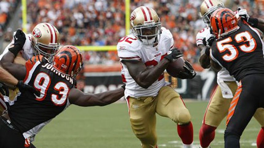 Kendall Hunter corrió el domingo siete yardas para lograr el único touchdown del partido con 3:59 minutos en el reloj y los 49ers de San Francisco remontaron para ganar 13-8 a los Bengalíes de Cincinnati.