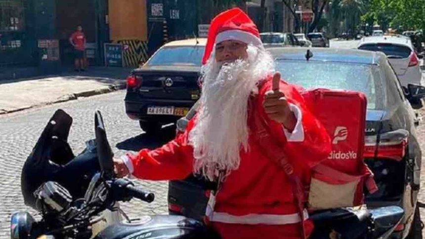El repartidor mantuvo al delincuente sometido en el piso hasta que llegó la policia de Rosario y fue ahí cuando en redes sociales fue catalogado como héroe vestido de Santa Claus.