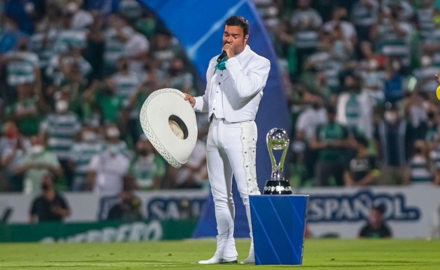 El cantante mexicano fue el encargado de entonar el himno por su afición con el equipo de Santos, pero Montero se equivocó antes de que comenzará el estribillo.
