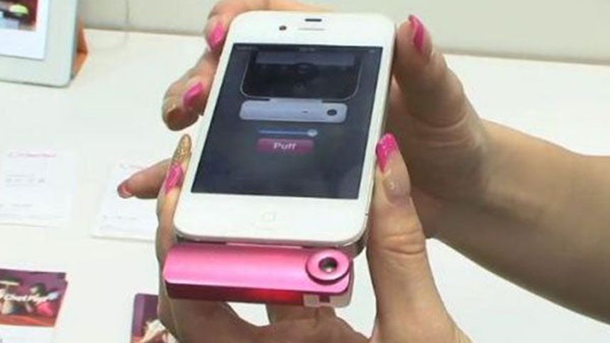 La firma ChatPerf mostró el dispositivo Scentee, que se puede conectar a los teléfonos inteligentes y se utiliza para enviar olores a los amigos.