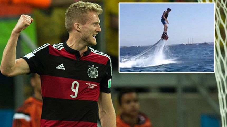 El delantero André Schürrle publicó, a través de redes sociales, un video donde está practicando el deporte extremo jet-pack riding acuático.