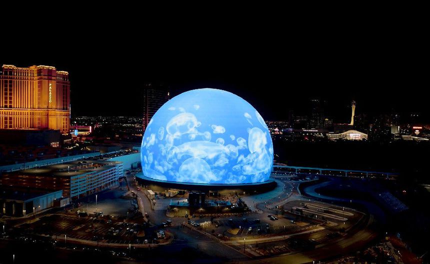 The Sphere cuenta con un exterior iluminado por una pantalla led de 54 mil metros cuadrados, una superficie que equivale a cerca de ocho canchas de futbol, compuesta por más de 50 millones de luminarias LED.