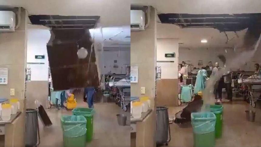 En redes sociales se hizo viral el video del momento en que cayó parte del techo del área de urgencias del Hospital General Regional del Instituto Mexicano del Seguro Social (IMSS) en Cancún, ante la mirada de pacientes y trabajadores de la salud.