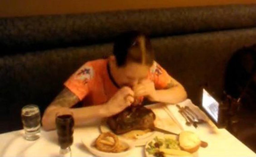 La madre de cuatro hijos fue a un restaurante de Portland, Oregon y devoró la carne sólo acompañada de un vaso de refresco y otro de agua.