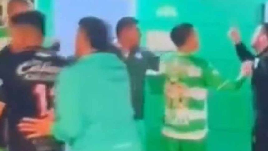 En un video que ha circulado en redes sociales se puede ver a varios jugadores de ambos equipos deteniendo al entrenador y al jugador de Santos. Al final ambos fueron separados y fueron rumbo a sus respectivos vestuarios.