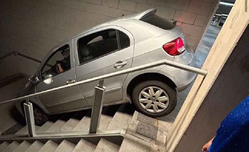 Un aficionado del Cruzeiro vivió momentos de desconcierto y tensión al atorar su automóvil en las escaleras del estadio Mineirao, al término del encuentro de futbol entre Cruzeiro y Botafogo, que finalizó con un marcador de 3-2. El evento ocurrió la noche del pasado domingo.