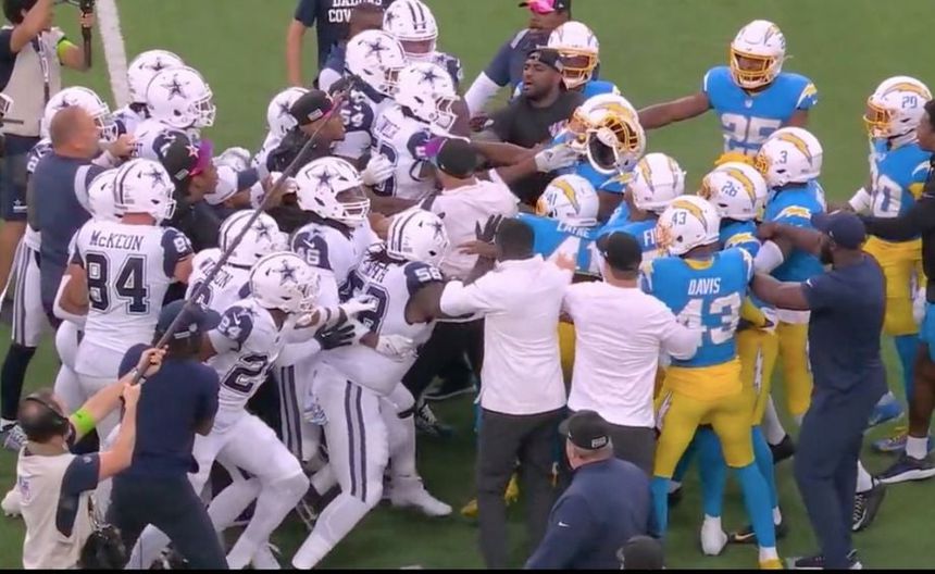 ¡Se están peleando! Jugadores de Dallas y Chargers protagonizan bronca antes del juego