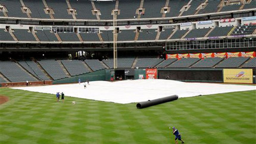 Las demoras por lluvia en la noche del sábado fueron las primeras en el estadio de los Rangers desde el 24 de mayo. Esta temporada se desarrolló durante uno de los veranos boreales más calientes y secos en el norte de Texas: incluso hubo 27 partidos en que la temperatura osciló en los 38 grados centígrados (100 Fahrenheit) a la hora del primer lanzamiento.