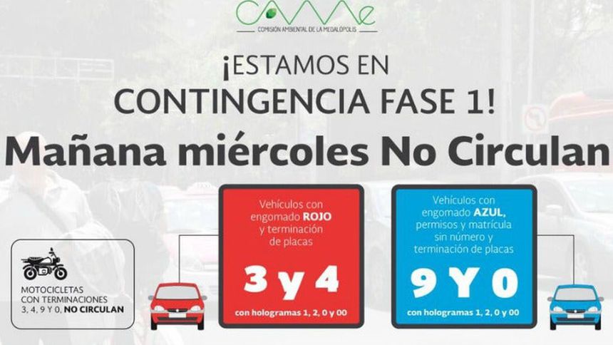 Este miércoles entra en vigor el mejor conocido como 'Doble Hoy No Circula' y no circularán los automóviles con engomados rojos (terminación de placas 3 y 4) y azules (terminación de placas 9 y 0).
