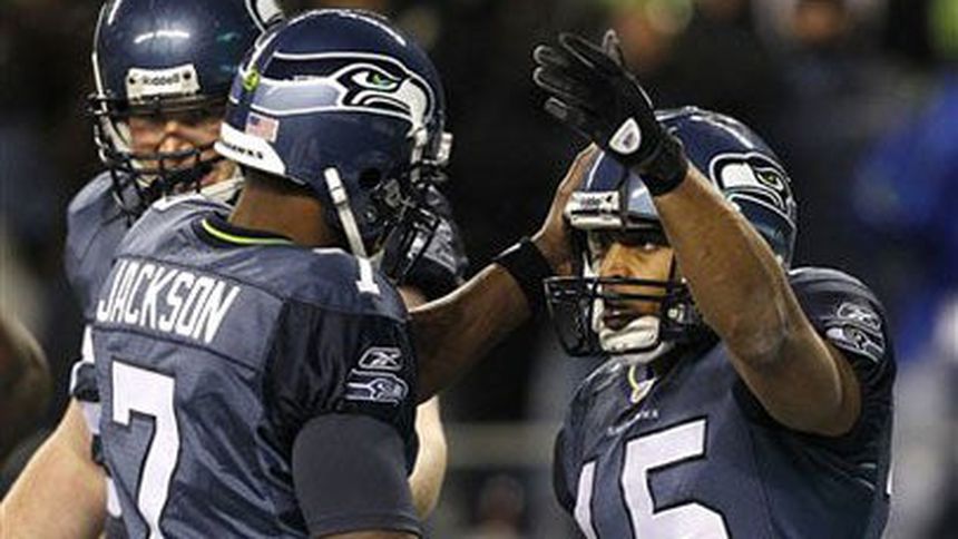 El novato Doug Baldwin bloqueó una patada de despeje en el primer cuarto que fue regresada 17 yardas por Michael Robinson para un touchdown y luego atrapó un pase de anotación de 29 yardas en el tercer cuarto a la vez que los Halcones Marinos de Seattle consiguieron la victoria 30-13 sobre los Carneros de San Luis el lunes por la noche.