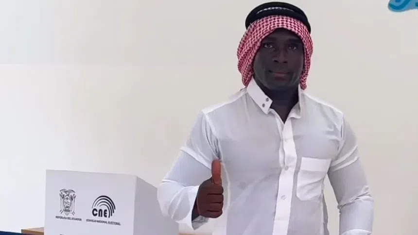 Así es el exjugador ecuatoriano acudió a uno de los centros de votación para estampar su votación y sorprendió al ingresar vestido de blanco un turbante rojiblanco así fue la casilla para emitir su voto secreto.