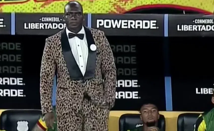 El estratega ecuatoriano no falla cuando se trata de elegir trajes elegantes, pero también extravagantes y peculiares. Y el encuentro contra River Plate este jueves no fue la excepción.