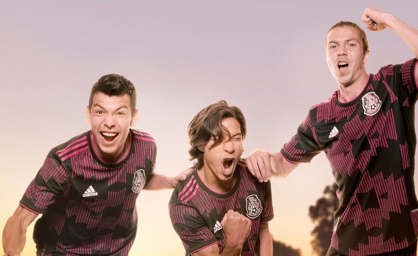 "Los patrones gráficos basados en el arte textil, destacan en un vibrante color rosa mexicano sobre todo el frente del jersey con fondo color negro. Los hombros llevan las tres franjas de adidas en rosa, así como en el filo del cuello redondo y las mangas. El uniforme se complementa con shorts y calcetas en la misma combinación de colores", informó el Tri.