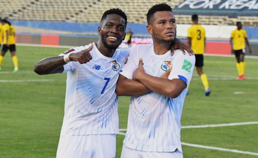 Jugadores panameños tras anotarle gol a Jamaica | AP