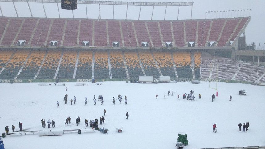 El Commonwealth Stadium tras fuerte nevada | TWITTER @hfabian777