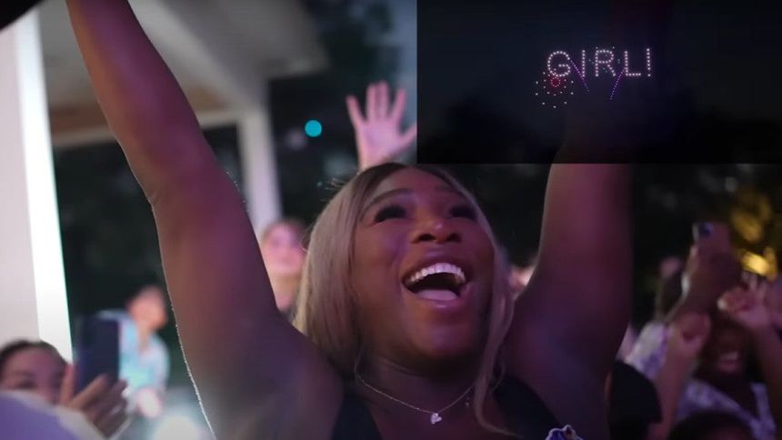 Los drones se coordinaron para formar la palabra "niña" en el cielo, lo que provocó la emoción y alegría de Serena Williams y Alexis Ohanian, quienes ya son padres de una adorable niña de 5 años llamada Olympia.