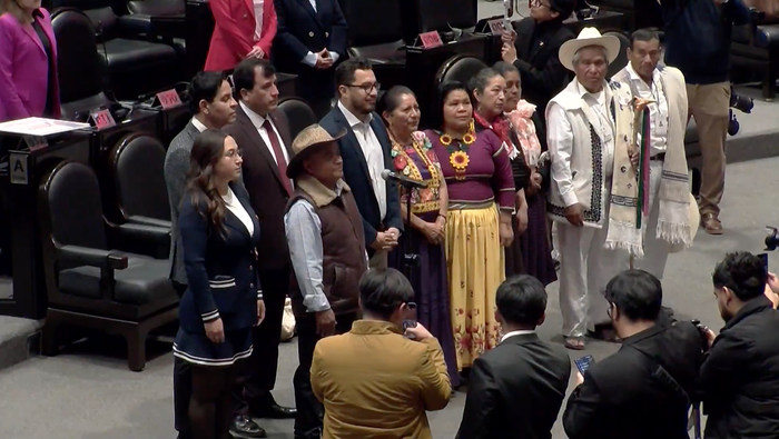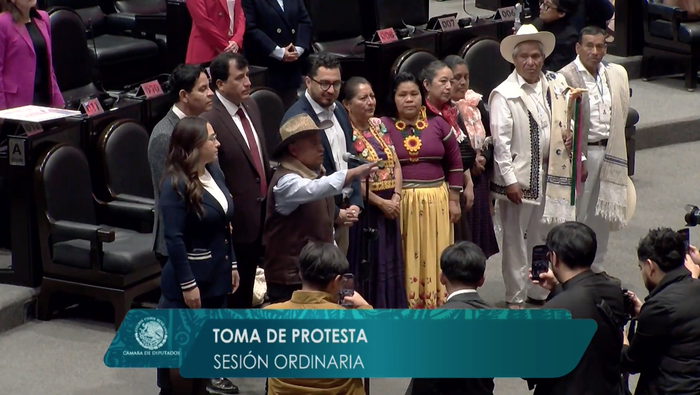 “Sea usted bienvenido, señor diputado. Saludos a los familiares que lo acompañan y a las autoridades de Temoaya, autoridades otomíes”, expresó.