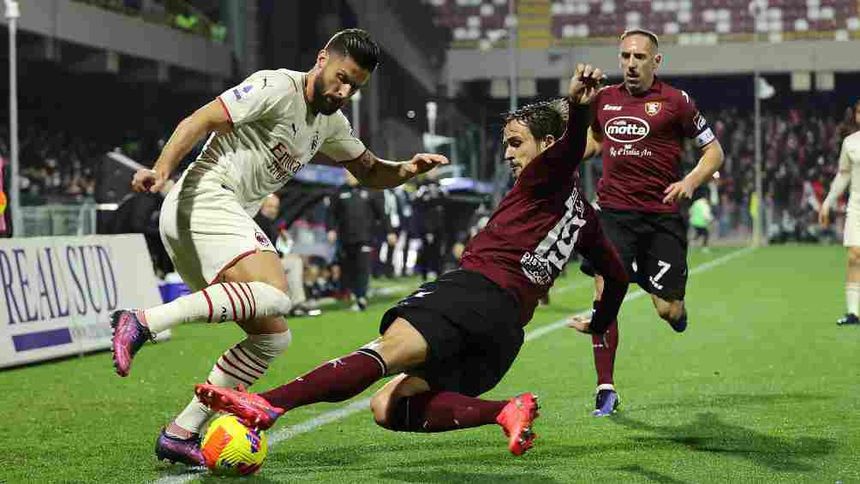 El Milan salvó un punto en casa del Salernitana, último de la tabla, al empatar 2-2, un resultado que puede privarle la primera plaza de la clasificación si el Inter vence al Cagliari en la Jornada 26 de la Serie A.
