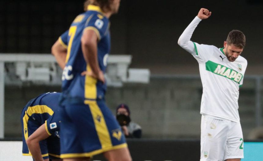 Berardi facturó su gol a los 76, aprovechando que los jugadores de Verona le dieron espacio de maniobra para definir con un remate que rozó el travesaño.