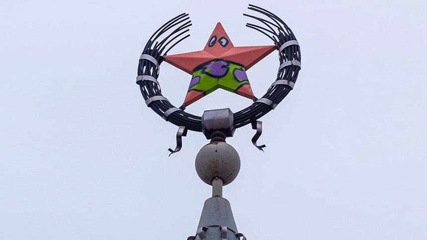 Aunque la URSS dejó de existir hace ya varios años, algunos monumentos se mantienen como parte de la infraestructura y, alguna mente 'creativa' y sin mucho qué hacer, decidió transformar una estrella soviética en Patricio, personaje de Bob Esponja.