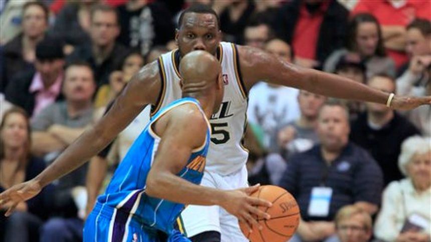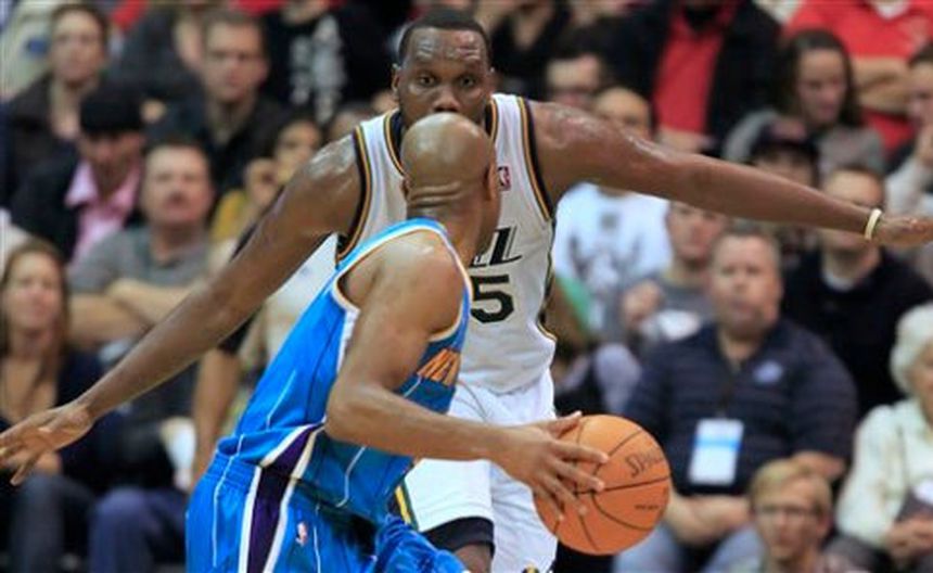 Al Jefferson conectó 22 puntos, Devin Harris aportó 19 puntos, incluido un triple agónico y tres tiros libros en los últimos momentos, y el Jazz de Utah derrotó el lunes por 94-90 a los Hornets de Nueva Orleáns.