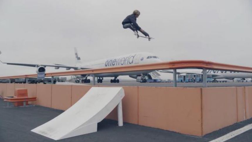 Arto Saari, Matt Berger, Andreas Larsen, Hiroyuki Matsuo, Curren Caples y Kasperi Kropsu son algunos de los skaters que realizaron trucos sobre sus tablas en distintos lugares del aeropuerto.