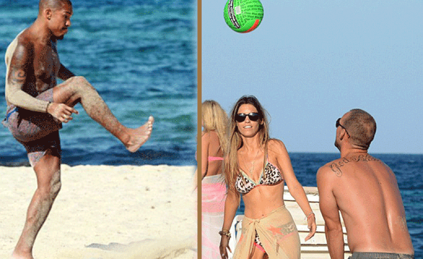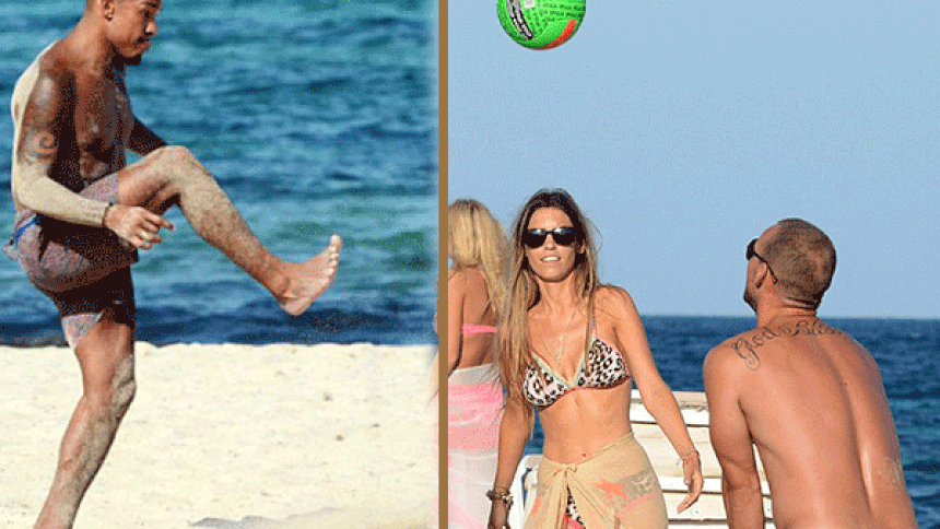 El futbolista, que ya ha sido nombrado uno de los tres mejores centrocampistas del mundo, no pudo resistirse a mantenerse activo y la pareja mostró su destreza atlética mientras jugaba un partido de voleibol.